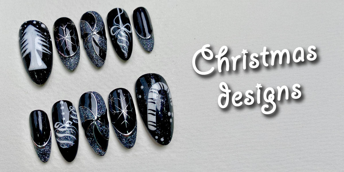 Midnight Frost Press-On Nails – Dark Winter Holiday Fake Nails Gothic Christmas